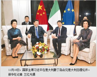 据新华社意大利撒丁岛11月16日电 (记者王星桥、陈贽)国家主席习近平16日在意大利撒丁岛会见意大利总理伦齐。
