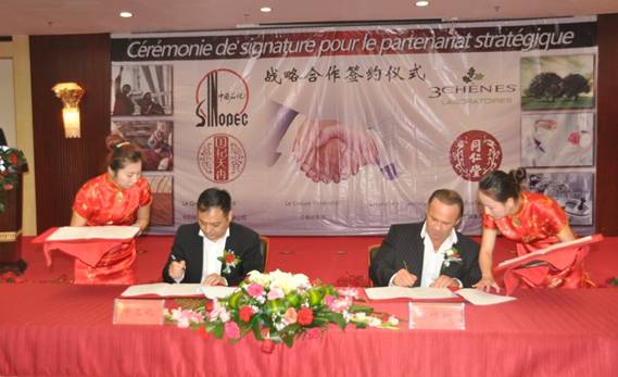 10月16日,中石化宁夏易捷石化有限公司与法国三橡树公司战略合作签约仪式在宁夏隆重召开。会上,双方正式签署战略合作协议,中石化宁夏易捷石化有限公司总经理齐金祥先生表示,此次与法国三橡树公司的合作具有非常重要的突破性发展战略意义,在签署协议前,双方就枸杞的种植、如何加强基地建设、打造有机枸杞、提高产品科技含量等方面都进行了十分深入细致的讨论和交流,此次合作将预示着中石化国杞天香品牌在向海外市场进军的发展道路又迈近了至关重要的一步。