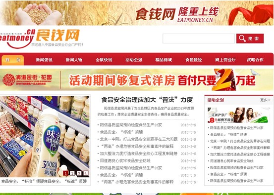 食钱网是现代化媒体,中国食品行业的第一电子商务综合性门户网站。运用在食品行业的影响及优势,将进一步整合资源,不断完善、健康、快速发展。食钱网高举为食品安全呐喊、为食品安全鼓劲、让全民参与食品安全、让全社会关注食品安全、实现中国梦、传递正能量、合作共赢的发展旗帜。