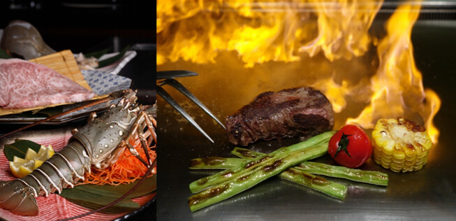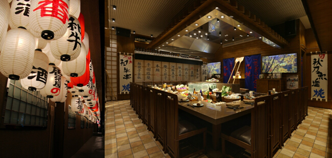 用餐的过程颇具仪式感, 每一种被烹制的食材都回由主厨高喊出名称,并由木船桨递送至食客面前。一条北海道喜知次用精美瓷器盛上桌,少许柠檬为点缀,亮红脆香的鱼皮,粉白鲜嫩的肉质,散发出海盐与柠檬交融的香气,当属一场视觉与味蕾的盛宴。而和牛亦是炉端烧中不可或缺的角色,无论是串烧还是整块儿烧烤后切小块儿食用,都具有难以抵御的鲜美滋味。热衷果蔬者不妨尝试凤梨或榴莲,独有的酸甜夹杂烘烤的味道,让人回味无穷。除了品类纷繁的炉端烧及铁板烧,各式刺身寿司的烹饪也被厨师驾驭得游刃有余,让您的口味得到多样化满足。