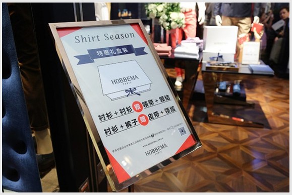 在HOBBEMA衬衫季活动期间,购两件衬衫赠珍藏版定制礼盒、HOBBEMA精美领带、领结。购衬衫与长裤组合赠珍藏版定制礼盒、HOBBEMA精工皮带、领结。购买明星礼盒则可获得价值600元的抵用券。