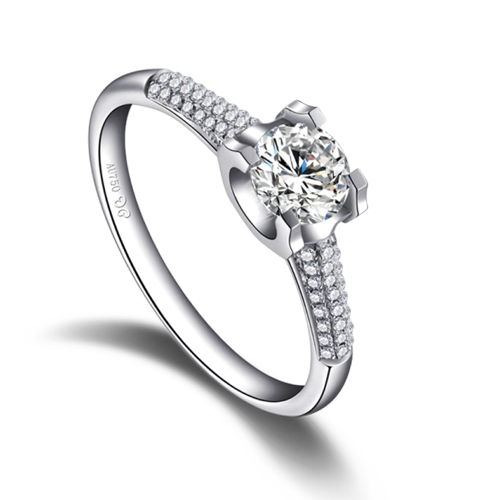1886年,Tiffany &Co蒂芙尼创始人查尔斯·路易斯·蒂芙尼推出了Tiffany Setting订婚钻戒,并开创了用钻戒求婚的唯美传统。这枚象征永恒爱情的经典钻戒独具创意地采用铂金六爪镶嵌将蒂芙尼纯美钻石托嵌于戒环之上,使其光芒随均匀的钻石切割面得以全方位折射,从而呈现出前所未有的耀眼光芒。