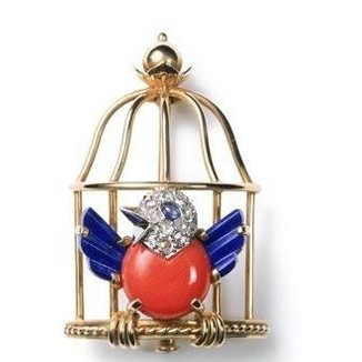 动物是卡地亚Catier设计的主题之一,不论是蛇的鳞片,豹子的皮毛,鹦鹉还是小鸟的翅膀等,卡地亚Catier的设计师都会在细节中传递出不同的审美情趣。通过黄金、铂金、玫瑰形钻石,珊瑚,青金石,眼睛用磨圆切割蓝宝石打造的自由的小鸟被设计成法国国家的颜色,而它愉快轻松的,自由飞出鸟笼的造型则寓意了自由的伟大。