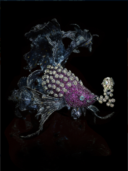 Wallace Chan陈世英先生在接受采访时介绍,此次来内地举办媒体活动和艺术品展览,是继2012年9月在应邀前往法国巴黎大皇宫参加第26届《巴黎古董双年展》,成为史上首位及唯一获邀参展的华人珠宝艺术家后,再次受到“巴黎古董双年展”组委会热情邀请,将于今年9月在法国巴黎大皇宫参加第27届巴黎古董双年展,再次展出个人创作艺术精品,让来自东方的珠宝魅力再现锋芒。北京是亚洲巡回活动中非常重要的一站,首次展出了特别为第27届“巴黎古董双年展”创作的珠宝艺术作品。作品以Wallace Chan长达四十多年的造诣为基石,环绕“非想非非想——观物出神”的主题,带领心灵漫游于物我即所造化的意境。作品展现的雕刻工艺登峰造极、艺术创意横空出世、瑰丽宝石千年一遇,演活东西一体的文化思维,以及扣人心弦的人文情感。