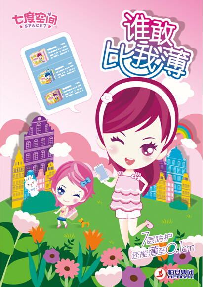 可爱的少女系列,迷人的优雅系列,高贵的公主系列再到现在的七度空间少女特薄与蘑菇贴,从“我的舒服我来定”到“谁敢比我薄”,七度空间一直在努力把自己打造成行业潮流创新品牌。
