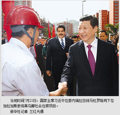 本报加拉加斯7月21日电  (记者杜尚泽、丁大伟)当地时间7月21日,国家主席习近平在委内瑞拉总统马杜罗陪同下在加拉加斯参观蒂乌娜社会住房项目。
