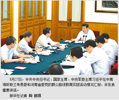 新华社北京8月27日电 中共中央总书记、国家主席、中央军委主席习近平27日在中南海听取兰考县委和河南省委党的群众路线教育实践活动情况汇报。他强调,党的十八大以来,党中央突出抓整治“四风”问题,做的是正本清源、发扬传统的工作。改进党风政风有了一个良好开局,但用达到作风建设的理想状态来衡量还有差距。做好党的群众路线教育实践活动这段时间工作很关键,一定要敬终如始、一鼓作气、善作善成,确保活动取得实效。教育实践活动有期限,加强作风建设无尽期。解决作风方面存在的问题,根本要靠坚持不懈抓常、抓细、抓长。