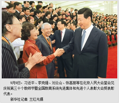本报北京9月9日电(记者刘维涛、董洪亮)庆祝第三十个教师节暨全国教育系统先进集体和先进个人表彰大会9日在京举行。中共中央总书记、国家主席、中央军委主席习近平在人民大会堂亲切会见受表彰代表,代表党中央、国务院,向受到表彰的先进集体和先进个人表示热烈祝贺,向全国广大教师和教育工作者致以节日的问候。