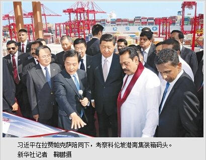 习近平和拉贾帕克萨总统考察中斯港口合作项目