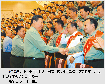 新华社北京9月22日电  (记者李宣良、黎云)中共中央总书记、国家主席、中央军委主席习近平22日在北京接见全军参谋长会议代表。他强调,面对国家安全新形势和军事斗争准备新要求,必须努力建设听党指挥、善谋打仗的新型司令机关,推动军事工作创新发展,不断增强组织指挥部队打赢信息化局部战争能力。