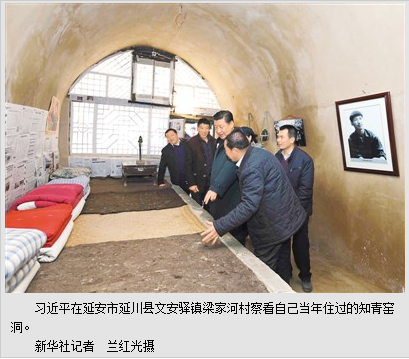13日一大早,习近平从北京乘飞机一到延安,就转乘汽车前往延川县文安驿镇梁家河村看望村民,并给乡亲们送上他自己出钱采办的年货。