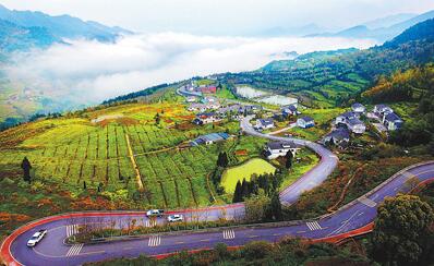 近年来,重庆市万盛经开区大力推进美丽乡村和“四好农村路”建设,把公路修到农户家门口,并鼓励引导农户依托地域特色开发特色旅游,美丽乡村游红红火火,农户增收欢欢乐乐。图为汽车行驶在万盛经开区黑山镇南门乡村公路上,两边的景色美不胜收。