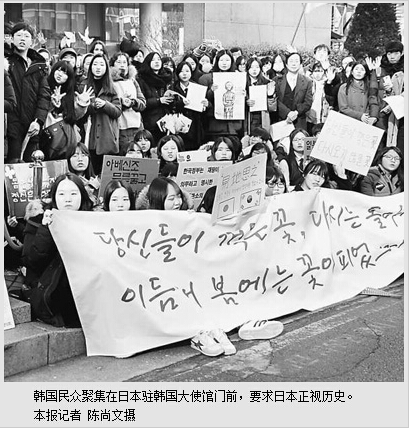 根据韩日“慰安妇”问题达成的相关协议,韩国将发起成立慰安妇受害者援助基金,日本决定以财政预算向该基金出资10亿日元。然而,日本国内不断有呼声要求撤走日本大使馆前的“和平少女”像。金运成和金曙炅夫妇告诉本报记者,相关协议的达成忽略了受害者的感受,日本不承认战争罪行,没有谢罪和反省之意。