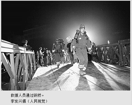 受地震影响,原本通往震中的桥梁严重损坏导致无法通行,救灾物资不得不通过人力搬运,极大地阻碍了灾区物资和受伤人员的转运。抗震救灾指挥部要求尽快铺设新的桥梁,打通生命通道。