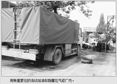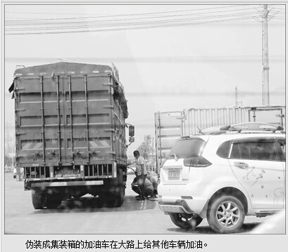 随后,我又来到另外几家汽车修理厂,情况大致相同。工人没有防护服,院内没有消防设施,脏乱差充斥每个角落。据了解,这些修理厂说起来有许多部门监管,但证照不全的却占大多数。走访调查期间,我恰巧看到一辆伪装成集装箱模样的加油车正在路上给其他车辆加油。媒体曾经报道过该县黑加油车就像一颗颗流动炸弹,基本上隐藏在各个汽修厂内。曝光后这里虽“安宁”过一段时间,现在又死灰复燃了。