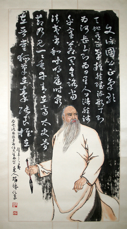 书画同源,它们始于象形文字,后来各自根据自己的文化使命而沿着自己的方向发展,绘画越来越写实越具象,而书法则越来越符号化,越向简约的抽象化发展。但是它由于发源于一个体系,所以它们所用的工具和材料竟是一致,甚至于历代的绘画大师都是具备了高超的书法水平才能达到大师级的品级。