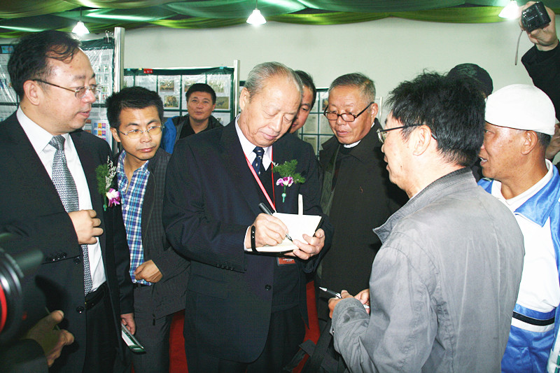 图为中共高邮市委书记韩方陪同中华全国集邮联合会会长杨利民参观邮展,并与集邮爱好者签名互动。