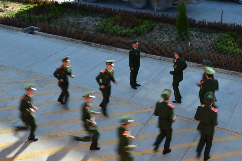 训练场上气温升至24.5℃;官兵们丝毫热情不减,规格不降。“排头,注意你的步幅...”二班副班长马德祥细致入微,指挥行进方向变换的他并没有因为兵龄和经验而临场胆怯,或是产生顾虑。按照训前动作示范,站在指挥员位置上气势振作,跑位选择准确,环环衔接连贯,为所以队列人员深深信服。因此在当天晚些时候的收课会操中,全体队员们默契配合一鼓作气“博得头彩”;马德祥于是被大队教导员当众表扬鼓励。