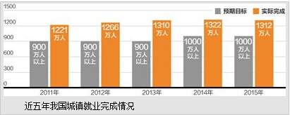回首2015年,就业成为经济运行一大亮点,全年城镇新增就业1312万人,超过预期目标。
