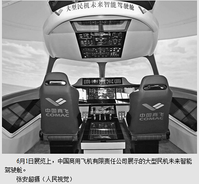 在这片展区,中国商用飞机有限责任公司首次展示其研发的大型民机未来智能驾驶舱。C919大型客机项目总设计师吴光辉说,这次展览采用超宽超大触摸显示屏,实现驾驶舱的简洁布局,采用触摸和语音控制作为主要控制方案。