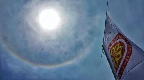象征太极与瑜伽的火炬点燃之际,天空中显现美丽的日光晕