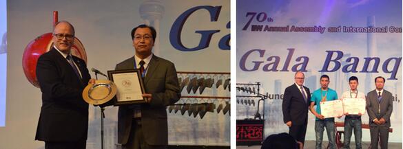 IIW主席Gary Marquis先生和刘振英博士给大赛获奖选手哈萨克斯坦Assylbek Chonekbayev、中车青岛四方机车车辆股份有限公司的牟世超颁发了获奖证书,祝贺他们取得的优异成绩!