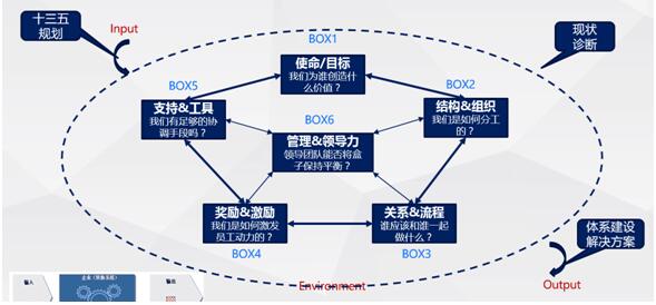 “六盒模型”是指企业(或业务单元)从使命/目标、结构&组织、关系&流程、奖励&激励、支持&工具、管理&领导力六个维度对体系进行自我诊断,通过发现差距并进行弥补,来实现持续完善。通过引入运营模型,帮助企业得到更全面地提升。这也是运营工程部积极响应公司“持续构建完善大运营体系”号召的重要举措。
