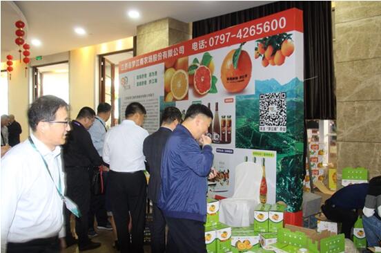 图:梦江南董事长周清俊为参会嘉宾介绍梦江南富硒脐橙