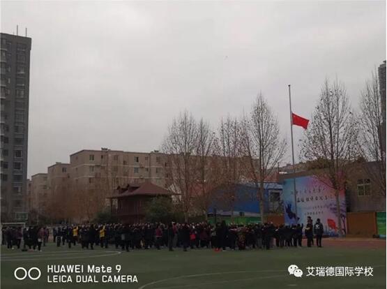 在今日,12月13日,国家公祭日当天,早上,穿着深色校服的艾瑞德国际学校的孩子们,自动自发来到国旗广场,参加降半旗仪式,在第四个南京大屠杀死难者国家公祭日,艾瑞德孩子们在此共同悼念南京大屠杀无辜死难者,悼念所有惨遭日本侵略者杀戮的死难同胞,缅怀为中国人民抗日战争胜利献出生命的革命先烈和民族英雄。