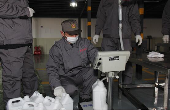 春运期间,太原物资供应段党员突击队员灌装产品保证精准,不浮多短少,不跑冒滴漏