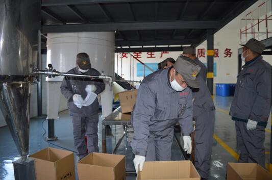 太原物资供应段党员突击队员严格按照作业流程和分工,折叠产品包装,检查设备运行状态