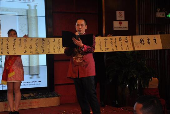 在本次年会上,还举行了隆重的《天香赋》赠赋仪式,由深圳书法家协会吕小葵老师创作,国内书法名家杜建勋老师执笔的长达10米的赋,随着卷轴缓缓打开,露出真颜,在场所有观众无不为之震撼。