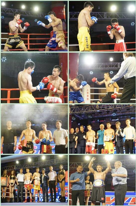 随后进行的WBF"人民拳胜"国际拳王争霸联赛78公斤级澳亚地区拳王争霸赛将现场气氛推向了一个高潮。本场澳亚拳王争霸赛由中国拳手陈明村迎战来自日本的职业拳王竹村光司。面对来势汹汹的"老对手"竹村光司, "狙击手"陈明村一上场便展示出了惊人的爆发力和攻击力,只用了短短44秒的时间,便两次击倒对手,直接KO竹村光司,豪夺本次WBF澳亚地区拳王争霸赛金腰带。