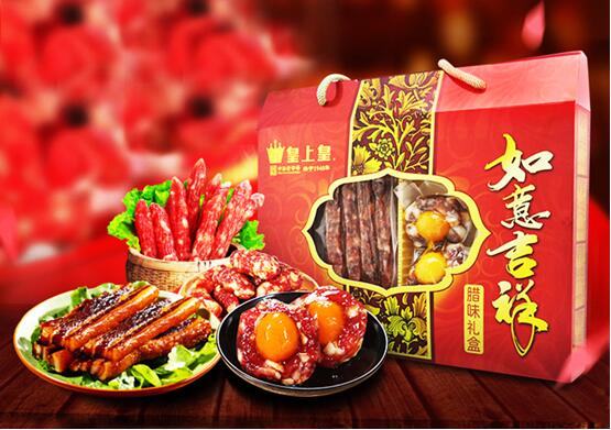 当每年的第一阵秋风席地而起时,“秋风起,食腊味”这句口头禅都会在广府地区的人群之中风行着,广式腊味特有的香味弥漫了大街小巷,捎来秋的消息。广府人对广式腊味颇为钟情,一年四季都爱吃,尤其是入秋之后,天气逐渐凉快,吃起腊味便觉得更加口感爽朗、芳香醇厚、意味悠长。广式腊味历来被视为高档菜肴,在古代的时候是宫廷贡品,直至今时今日,如果没有腊味压轴的话,象中秋节这样的重大节庆场合,是成不了宴席的,说起广式腊味,人们都会想到皇上皇。皇上皇腊味具有悠久的历久,始创于1940年,现拥有皇上皇、香肠先生、金冠和金风等几大系列,其中,金冠腊味,更是因其具有独特的“糖酒”风味而赢得了“腊味之王”的美誉。广式腊味采用传统工艺腌制,用酱油、白糖、白酒调配成卤汁,将鲜肉浸泡两三天后,再挂起来晒干或烘干,由于不用烟熏,所以质地红润、色泽金黄、油光灿灿,无论蒸之、煮之、炒之,皆肉香扑面,口感柔韧甘甜,食之齿颊留香,令人回味无穷。