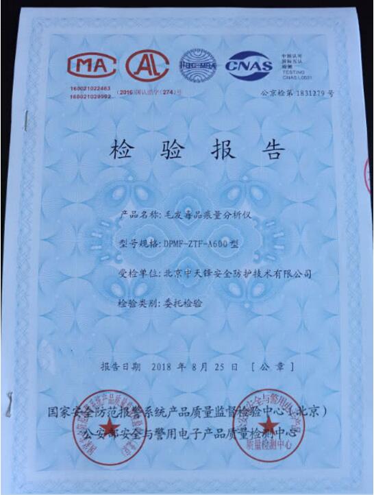 “我们利用中天锋毛发仪器对市局缴获的吸毒人员毛发样品进行了盲测,其中吸食冰毒和吗啡的毛发检测结果准确率为100%,该仪器各项性能指标均符合我们禁毒实战需要,对有关科研单位辛勤付出表示感谢,接下来,我们根据禁毒工作需要,进行统一采购。” 天津市公安局禁毒总队毒品鉴定中心负责人表示。8月13日,中天锋毛发毒品检测项目组应天津市禁毒总队毒品鉴定中心邀请,安排技术人员携带毛发毒品检测仪赴该中心,对吸毒人员毛发样品进行盲测,与此同时,对30例非吸毒人员的毛发进行采样对照测试,测试结果均为阴性。