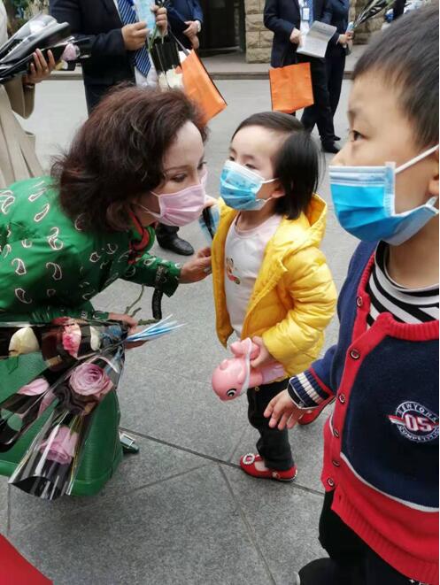 青青女士和她的公益爱心人士一起,购买了一大批的口罩,同时还准备了玫瑰花,一大早就驱车去人员流动密集的地区去免费发放口罩,同时还送上一朵温馨的玫瑰花,起到了爱心的传递效果。告诉行人出门注意戴口罩,珍爱生命,珍惜一线工作者付出换来的成果,得到了老百姓拥护和支持,爱心传递影响到了社会的共识。