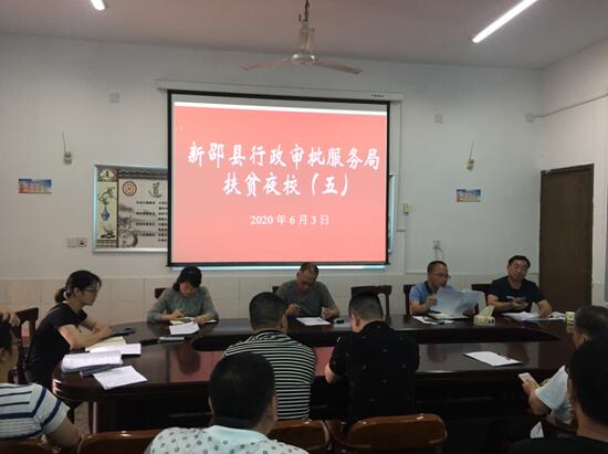 6月以来,湖南新邵县劲吹脱贫攻坚决战行动号,咬定目标、夯实责任,以决战决胜的信心向脱贫攻坚战发起总攻,擂响了决战行动的战鼓。为了切实打好总攻战,6月3日,新邵县行政审批服务局再次召开脱贫攻坚推进会,夜晚开展扶贫夜校培训班,严格贯彻落实县委、县政府部署的6月份脱贫攻坚“总攻月”的“再回头看”工作。
