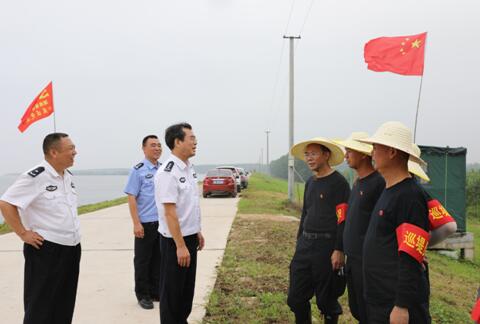 (范运田在大堤慰问巡逻查险的警察职工现场)