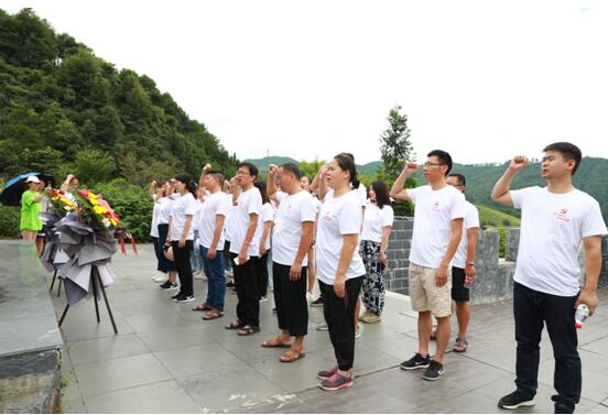 随后,全体党员来到了抗日阵亡将士纪念碑前敬献花篮,瞻仰碑文、追思先烈。在巍峨肃穆纪念碑前,党员面对鲜红的党旗庄严宣誓,重温入党誓词,誓言铮铮,历久弥坚。