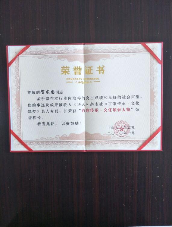 2020年4月份,贺龙国被评为江苏省书香家庭。