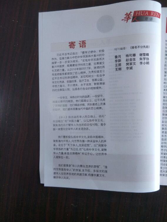 《华人》杂志站在华人的立场上,依托“中国概念”和“中国力量”,以弘扬中华文化、聚集海内外才智华人为主的综合性刊物,是中国一家面向全球华人的主流杂志。