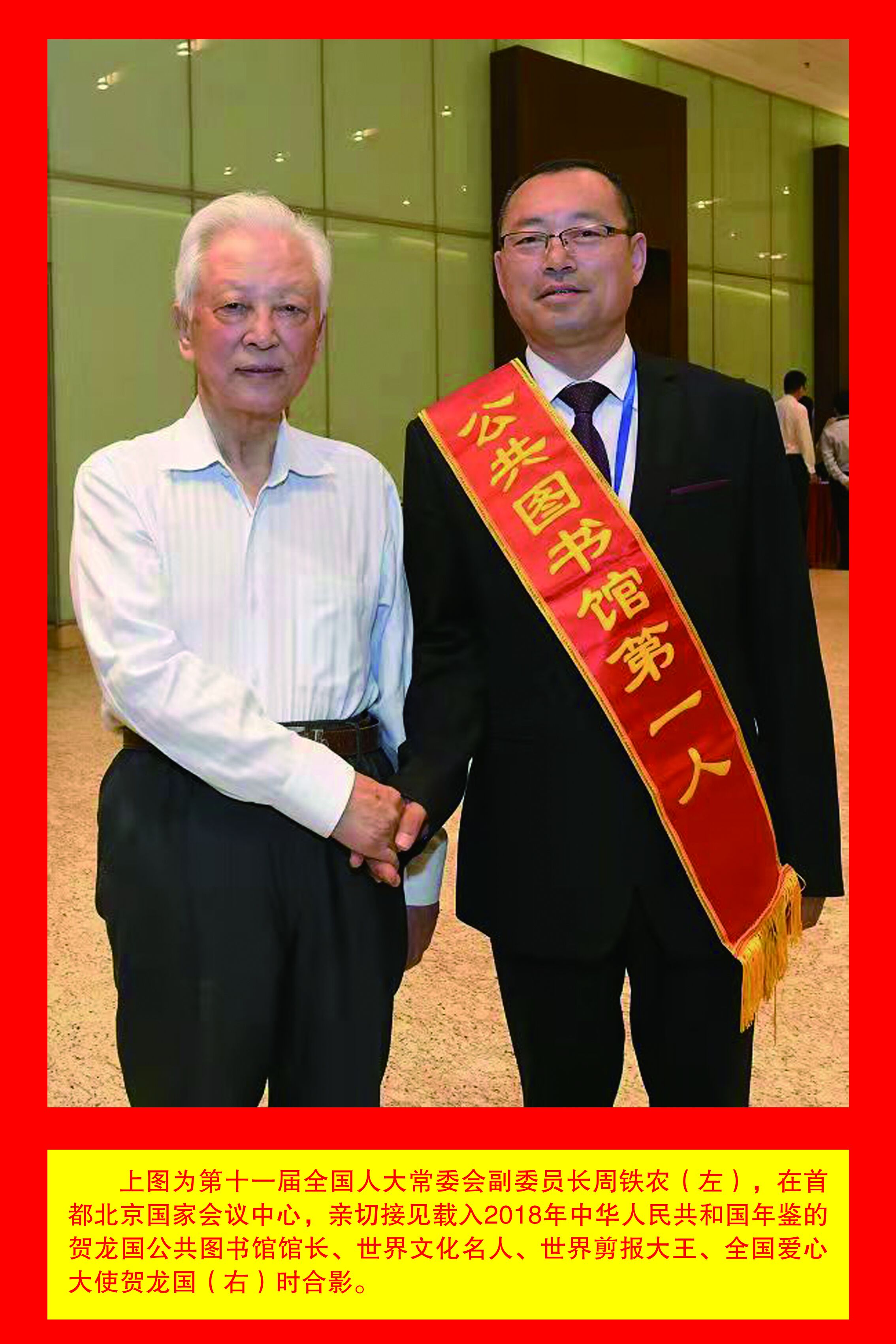 2019年阳春三月,正是全国“两会”召开之际,2018年《中华人民共和国年鉴》出版发行,贺龙国公共图书馆、莫言分馆、基尼斯剪报之最工作室、职工书屋、校外捕导站列编其中。