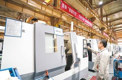 辽宁省沈阳市是东北重要的先进装备制造业基地。近来,沈阳市的先进装备制造业企业开足马力保生产,生产车间里一派繁忙景象。图为通用技术集团沈阳机床的工人在车间工作。