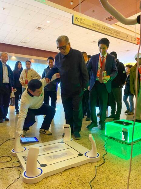 中国关心下一代工作委员会常务副主任、中国文联原党组书记 胡振民正在体验足踝检测设备。
