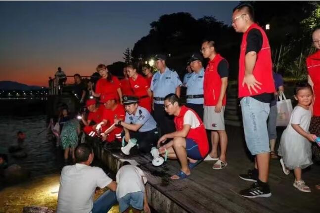 每年暑期,宁海县、慈溪市等地的各个乡镇(街道)的“红马褂”党员志愿者服务队伍活跃在重点水域周边,积极参与防溺水宣传、资料分发、巡逻劝导工作。这是各地利用“党群同心圆”平台发动在职机关党员志愿者开展“防溺水、保平安”党员巡逻宣传的活动。