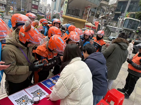 在“工会保障+安全通行”线上答题环节,参与者扫码即可随机抽取5道权益保障题目,全部答对即可通关,工作人员还对答错题目进行现场解析,帮助大家明晰维权路径、掌握保障要点,让新就业群体在轻松氛围中提升安全意识与权益保护能力。